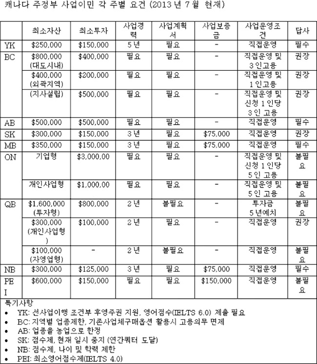 캐나다의 각 주정부들은 ‘주정부 사업이민 (Provincial Nominee Program for Business)’ 이라는 이름하에 각 주로의 사업을 유치하고 신청자의 영주권을 지원하는 프로그램을 운영하고 있습니다.주정부 사업이민은 대개 일정한 자격 심사과정을 거치면 그 결..
