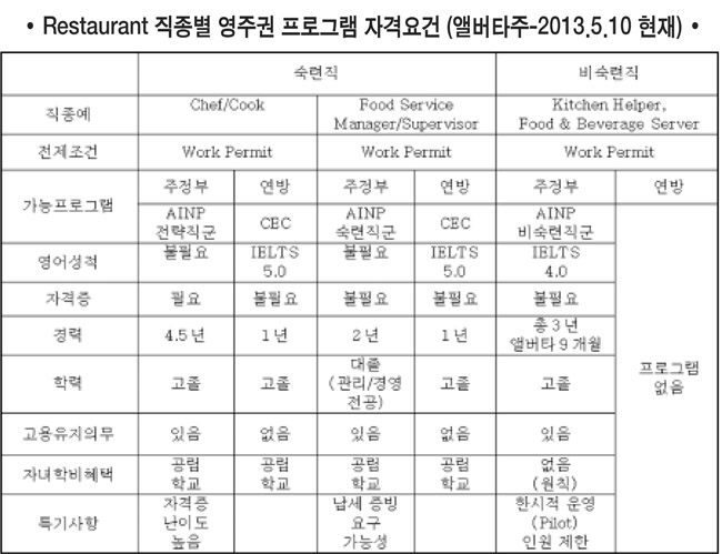 요식업체는 서비스업종 중에서도 가장 많은 내외국인 근로자들이 일하고 있는 분야입니다. 다운타운의 최고급 restaurant에서부터 동네 조그만 take-out 피자가게에 이르기 까지 남녀노소 다양한 국적의 많은 분들이 캐나다 영주권을 목표로 고생을 마다하지 않고 ..