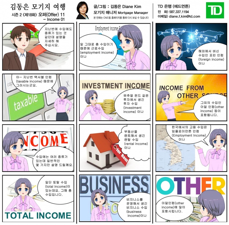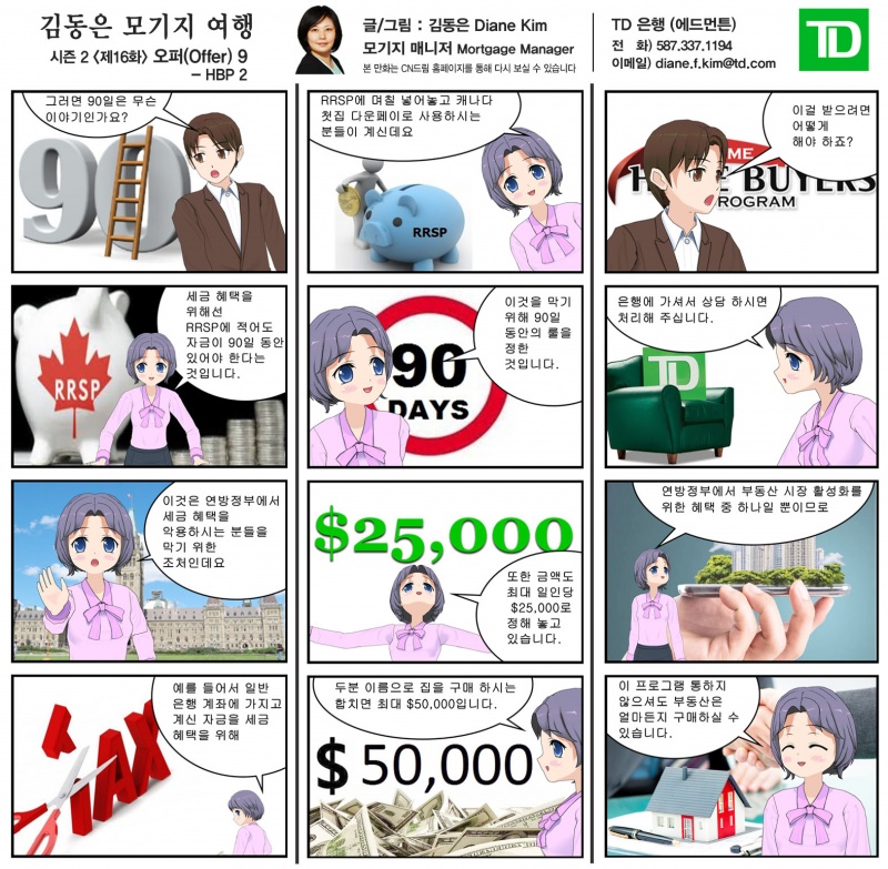 김동은씨 연락처Diane Kim, Mortgage ManagerTD 은행(에드먼튼) : 587-337-1194Email : diane.f.kim@td.com