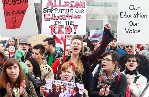 주정부의 대학지원금이 줄어들어 각 대학의 입학정원이 줄어 드는 등 앨버타의 대학 교육환경이 악화되고 있는 틈을 타 사스카치완주나 B.C주 등 인접한 타 주에서는 앨버타 학생들에게 손을 들어 환영하고 있다.특히 사스카치완 대학교는 최근 캘거리를 비롯한..