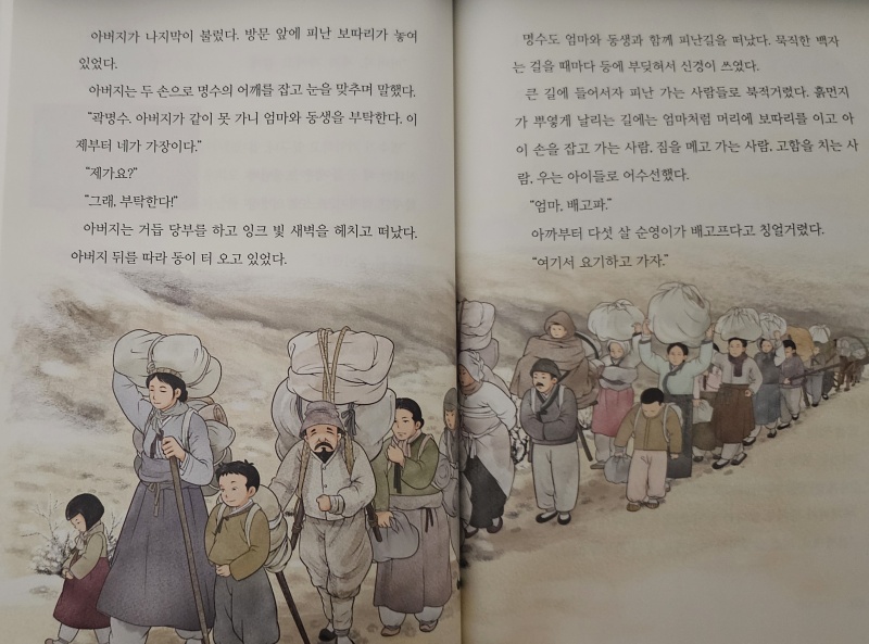 할머니가 순대랑 떡볶기, 오뎅 국물을 드시고 돈을 내면 아빠는 “아까 내셨어요.”라며 돈을 받지 않아요. 리어카를 끌고 느릿느릿 가는 할머니를 민지는 달팽이 할머니라고 불러요.